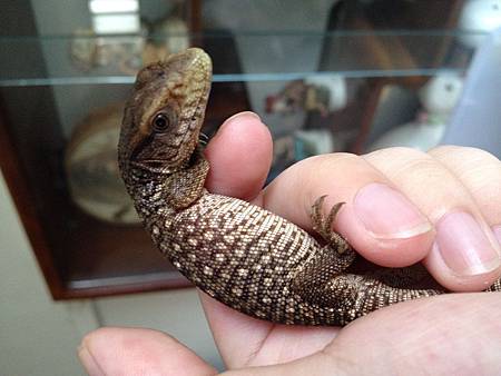16.5公分長,興趣是隨躺隨睡.............草原巨蜥的個性真的很大剌剌說